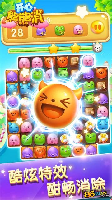 集结新萌友,消除不开心:游戏支持好友系统,可以邀请好友一起游戏,互送体力,比拼分数。酷炫特效,酣畅消除:精心设计的消除特效,带来视觉盛宴,让消除过程更加爽快。糖果世界,超多关卡:数百个精心设计的关卡,每个关卡都有独特挑战,保证游戏耐玩性。好友比拼,勇夺冠军:实时排行榜功能,可以与好友一较高下,争夺消除王者称号。全民萌宠,呆萌作战:收集各种可爱的熊熊角色,每个角色都有独特技能,助你轻松过关。