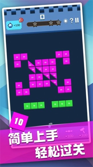 玩家们只需要根据游戏指示进行滑动点击操作等等以达到游戏中选择等,在玩家们进入了游戏当中后,瞄准角度发射弹球,把屏幕上的砖块统统打掉,每块砖都有数字,代表要打几次才能碎,打之前可以规划一下弹道,还能用道具加持一波,更轻松过关,每过一关都有奖励,越到后面越有挑战,看玩家们能打到第几关!游戏内设有多维度成长系统,通过收集砖块碎片可永久升级弹球攻击力,而天赋树系统允许玩家自定义反弹增强、速度调节等专属特性。独创的"砖块实验室"模式中,玩家可以自行设计砖块阵列并分享挑战,全球玩家将共同角逐最佳解谜方案。