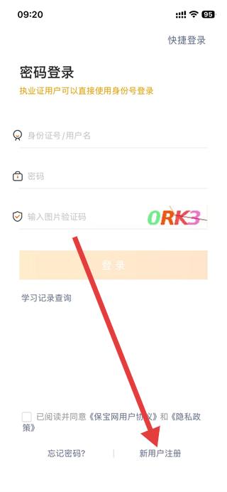 2、找到并点击下方的新用户注册选项,进入注册界面。