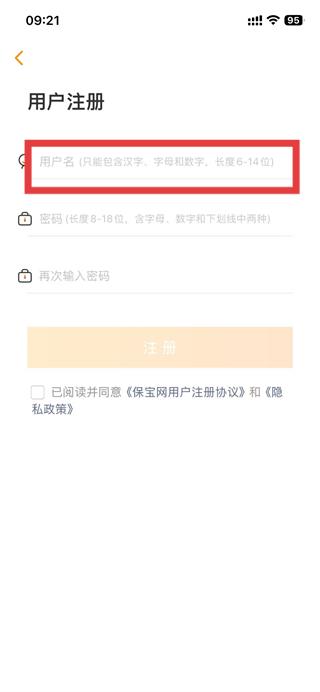 3、点击输入框,在输入框内按要求填写用户名。