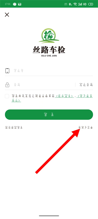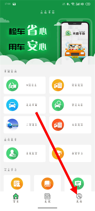 1、打开丝路车检,点击底部导航栏最右侧的我的按钮,进入个人中心页面。
