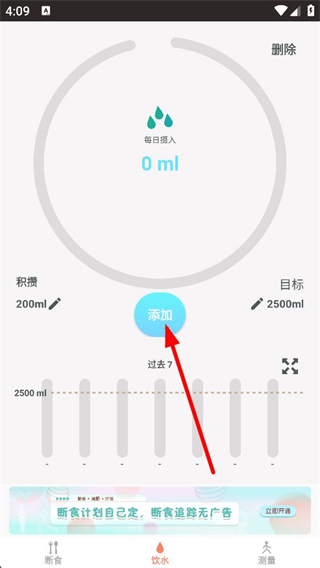 3、在饮水记录页面,点击添加,可记录饮水情况。