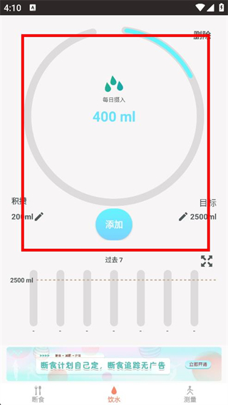 4、添加饮水后,页面会显示每日摄入水量等饮水相关信息。