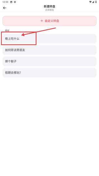 3、在新建转盘页面,选择晚上吃什么模板,进入模板设置界面。