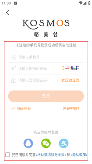 3、在登录页面,输入信息,同意协议后,点击登录完成登录操作。