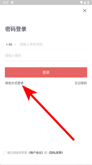 3、进入个人中心后,点击登录入口区域,跳转至登录页面,再选择“其他方式登录。