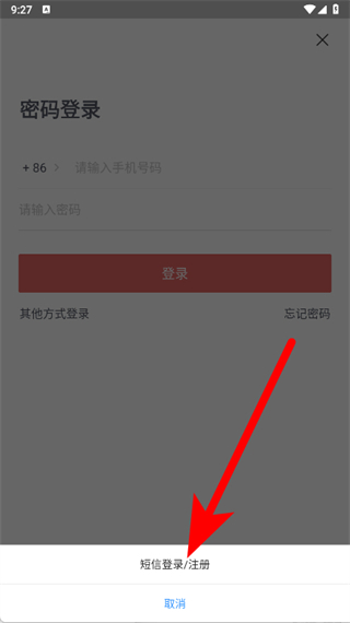 4、在其他方式登录选项中,点击短信登录注册,输入手机号码和页面中的图形验证码,点击获取验证码。