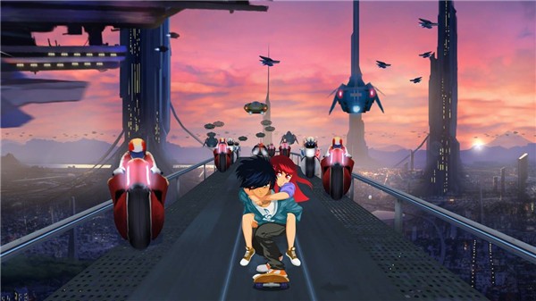 《梦境旋律》讲述了一对日本少年少女的成长故事。身患绝症的少女阿雅与热爱滑板的男孩小凯,为了逃避残酷现实,在想象世界中展开冒险。游戏采用碎片化叙事手法,通过数十个精心设计的章节,将两人从相识到相知的情感历程娓娓道来。每个关卡前的简短对话都洋溢着青春特有的懵懂与悸动,而随着故事推进,玩家能明显感受到角色心态的转变。最终章的设计尤为精妙,当小凯独自面对象征病痛的黑球时,游戏用压抑的黑色空间和急促的节奏营造出强烈的情绪张力。而通关后的释然,正是对"人生如梦"这一主题的最佳诠释——当学会勇敢面对,噩梦终将醒来。