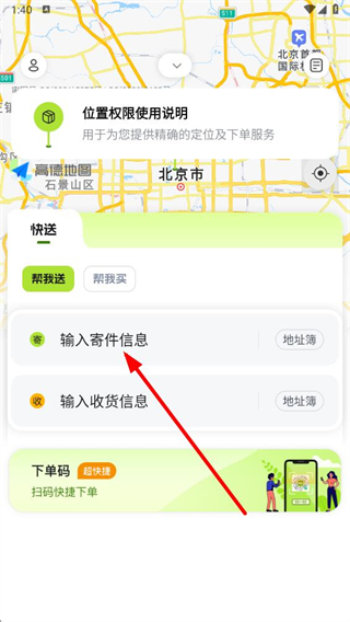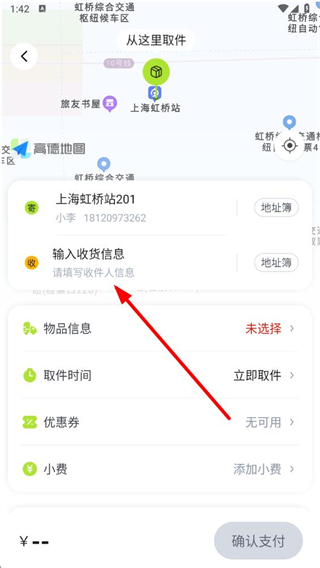 1、打开裹小递app,点击输入寄件信息,填写寄件地址等相关信息。