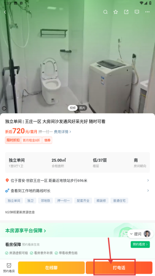 4、在房源详情页,点击打电话按钮,联系房东咨询租房相关事宜。