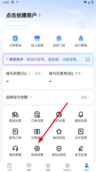 1、打开蜂鸟跑腿app,点击底部导航栏中的我的选项。