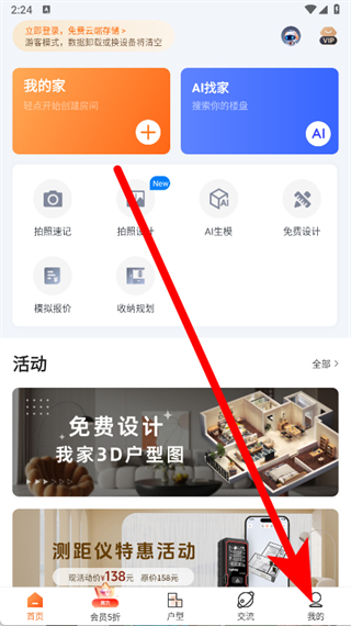 1、打开知户型,点击首页右下角我的,进入个人页面。