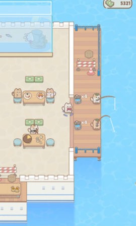 2、捕获的鱼类可以在岸上餐厅加工成各种美味料理,满足不同猫咪顾客的口味需求。随着餐厅声誉提升,玩家将获得更多金币奖励,用于扩建餐厅规模、增添新设施,最终打造出海底世界最受欢迎的猫咪主题餐厅。