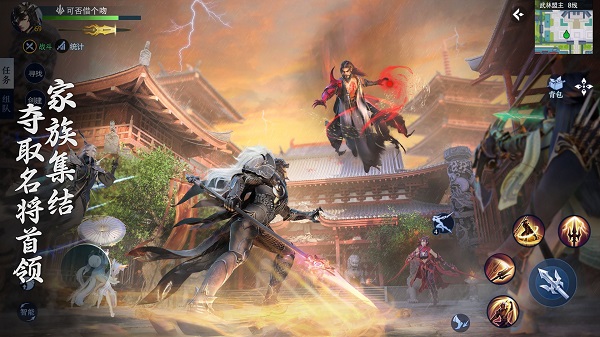 游戏背景设定在宋金大战时期,玩家将受掌门密令下山,开启一段波澜壮阔的江湖传奇。以"侠"之名,与天下侠士集结于家族大旗之下,共同闯荡江湖,叱咤风云!除了热血沸腾的帮派争霸,游戏还准备了丰富的休闲玩法。玩家可以与情缘好友在自由开放的大世界中游山玩水,欣赏日升月落的壮美景色,体验天气变幻的奇妙感受,策马同行的浪漫时光,尽情领略大宋山河的万千风情。