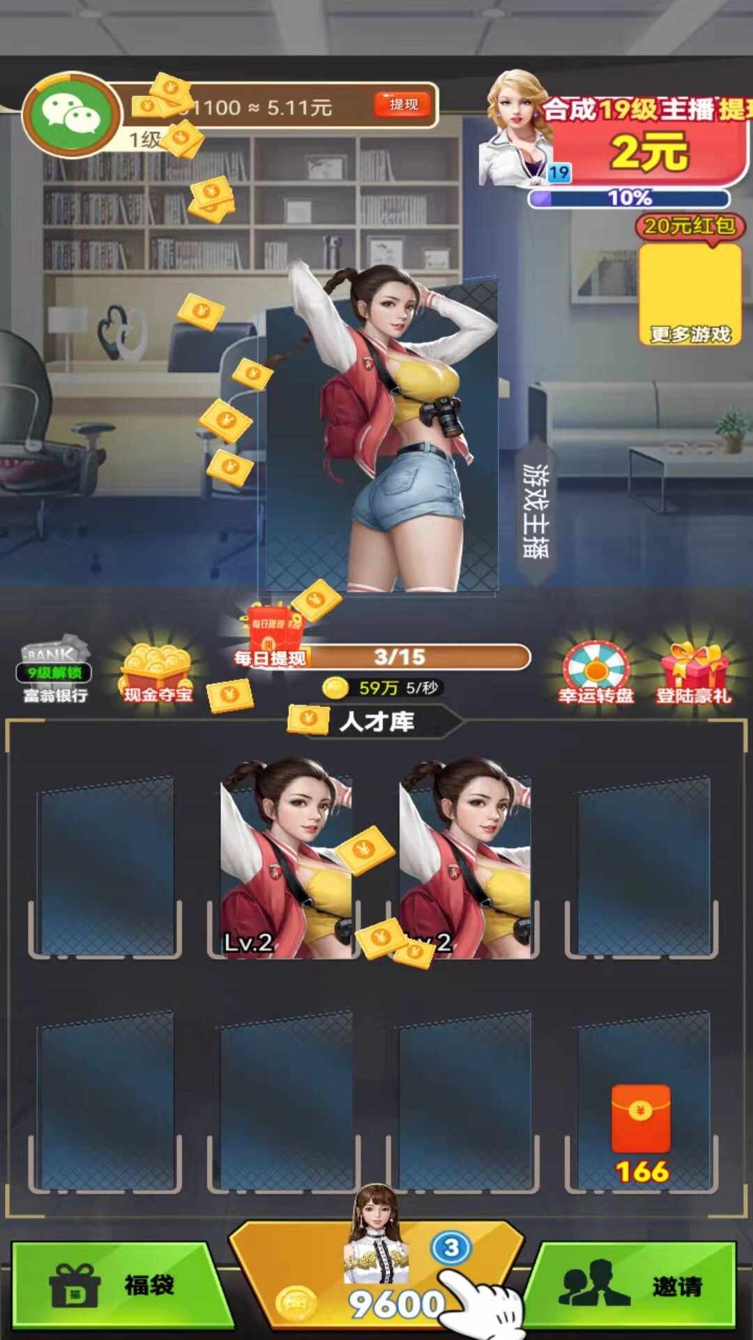 《主播真红包版》是一款趣味十足的养成类小游戏,玩家可以体验经营主播公司的乐趣。游戏中,你需要不断解锁和培养美女主播,通过升级她们的能力来赚取金币收益。这些金币可以直接兑换成现金红包,并实时提现到账。简单易上手的操作,加上真实的红包奖励机制,让玩家在享受游戏乐趣的同时还能获得额外收益。无论是想体验主播养成,还是想赚点零花钱,这款游戏都能满足你的需求。