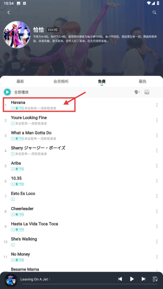 3、在恰恰舞音乐列表中,选择Havana音乐,进入播放页面。