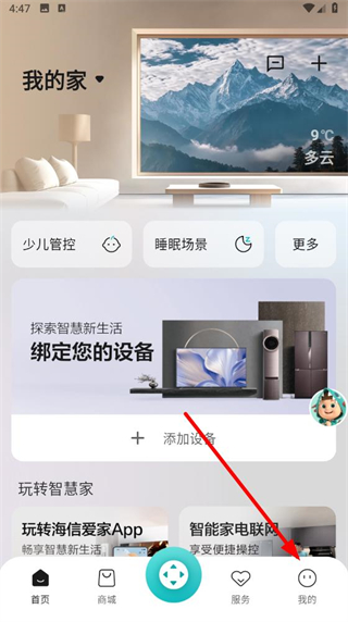 1、不再需要繁琐的遥控器切换,只需打开海信爱家App,即可方便地控制家中各种设备;