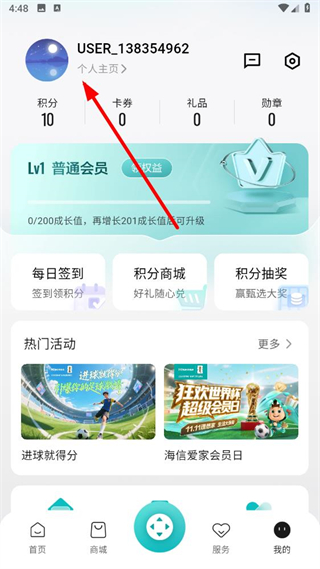 2、在我的页面,点击个人头像区域进入个人主页。