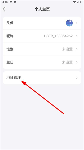 3、在个人主页页面,点击地址管理选项。