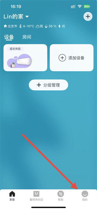 1、打开格力智能家居app,点击底部导航栏中的我的选项。
