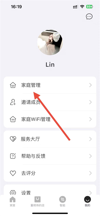 2、在“我的”页面,点击家庭管理选项,进入家庭管理页面。