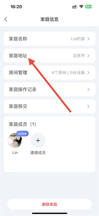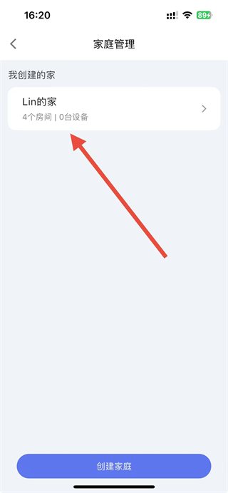 3、在家庭管理页面,点击家的选项,进入家庭信息页面。