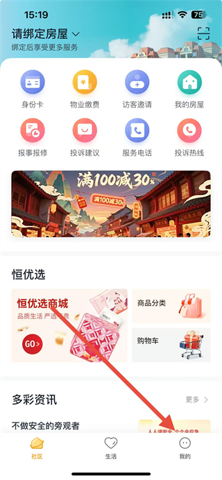 1、打开恒大智慧社区app,点击底部导航栏中的我的选项。
