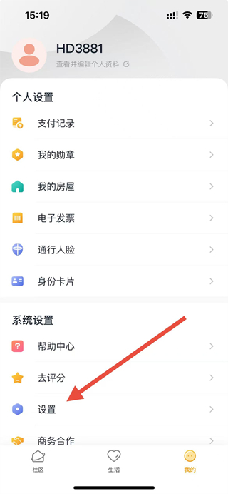 2、在“我的”页面,点击设置选项,进入设置页面。