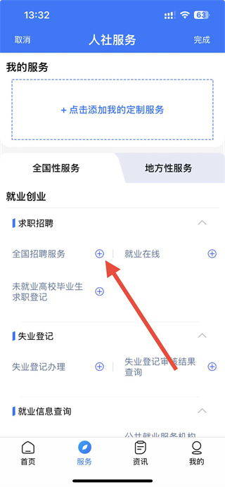 3、在服务列表中,点击想要添加的定制服务右侧的加号图标。