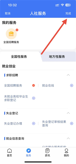 4、添加完成后,点击右上角的完成按钮,完成定制服务添加操作。