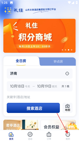 1、进入礼住,在首页点击底部我的,进入个人页面。