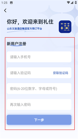 4、在新用户注册页面,依次输入信息,点击下一步,完成注册流程。