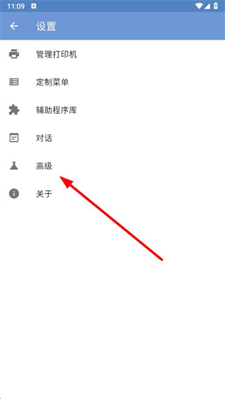 2、在设置页面,点击高级选项,进入高级设置页面。