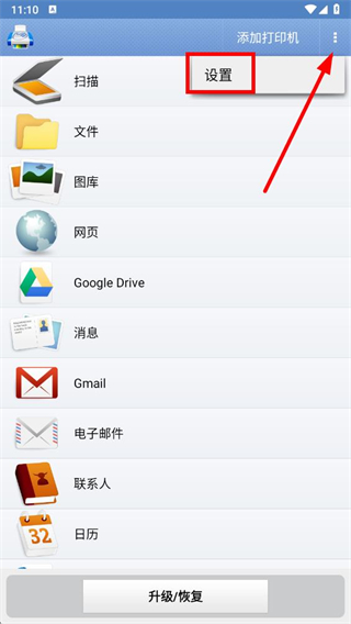 1、打开掌上打印宝app,点击右上角的三点菜单图标,选择设置选项。
