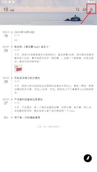 1、打开笔记类应用,点击右上角个人图标,进入我的页面。