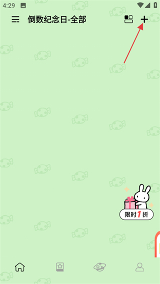 1、进入倒数日记首页,点击右上角+,进入新建页面。
