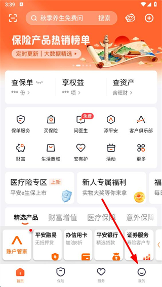 1、打开平安金管家app,点击底部导航栏中的我的选项。