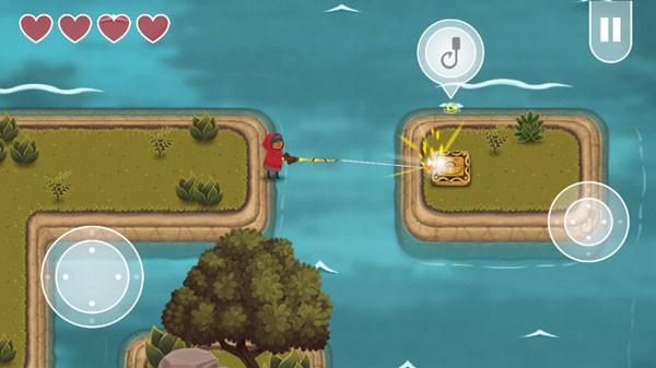 2、控制主角在神秘的岛屿间穿梭,通过鱼竿完成各种高难度冒险任务。从简单的物品收集到惊险的boss战,鱼竿始终是玩家最可靠的伙伴。