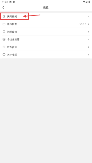 3、在设置界面,点击天气通知选项,进入早晚天气提醒页面。