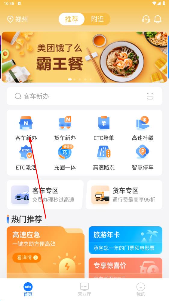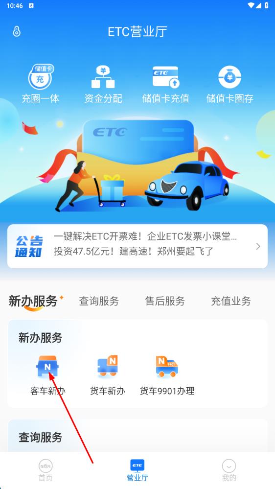 1、进入ETC营业厅,在新办服务板块找到“客车新办”选项,点击进入对应业务页面。