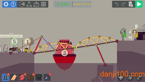 1.游戏提供了丰富多样的挑战模式,从基础教学到专家级难度应有尽有。玩家可以解锁和使用上百种不同的建筑零件和材料,每种材料都有其独特的物理特性和造价,需要根据实际情况灵活搭配。