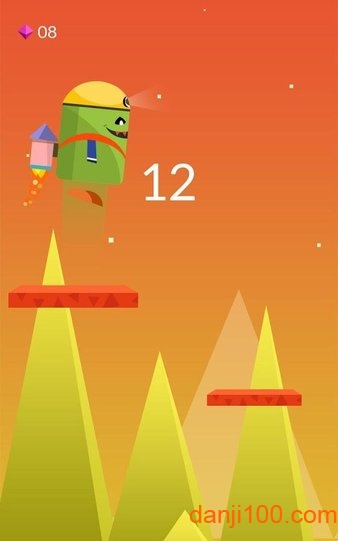 这款游戏的核心玩法是通过点击屏幕激活角色背上的火箭背包,在恰当的时机进行喷射推进。当玩家完美掌握喷射节奏时,角色会优雅地降落在前方的平台上。随着游戏进程,玩家需要不断从一个平台跳跃到另一个平台,同时收集沿途的金币和红宝石来累积分数。游戏采用渐进式难度设计,初期关卡较为简单,适合新手熟悉操作,后续关卡则会加入更多动态元素,让挑战更具趣味性。