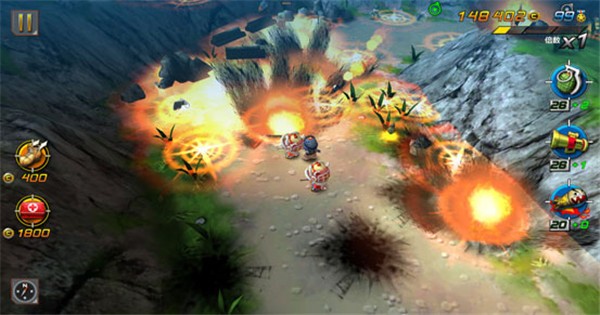 1、时刻查看战局的走向,移动小人的方向,滑动屏幕避开炮火的打击。