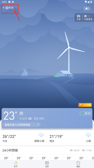 1、打开天气类应用,点击左上角城市名称区域,进入城市管理页面。