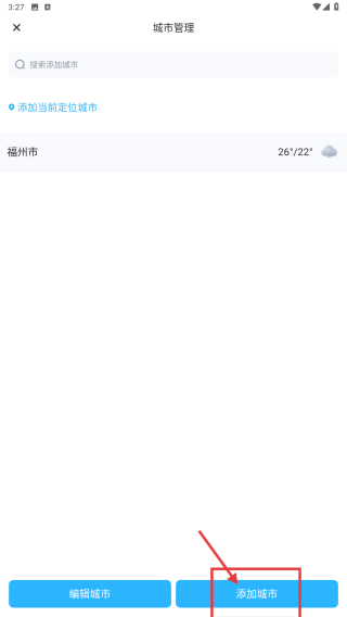 2、在城市管理页面,点击添加城市按钮,进入添加城市界面。