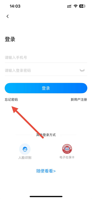 3、在登录页面中,点击忘记密码选项进入找回密码页面。