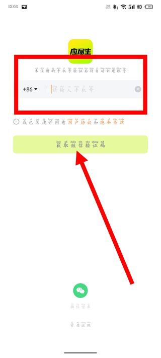 3、在手机号输入框填写手机号码,勾选同意协议后,点击获取短信验证码。