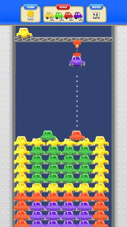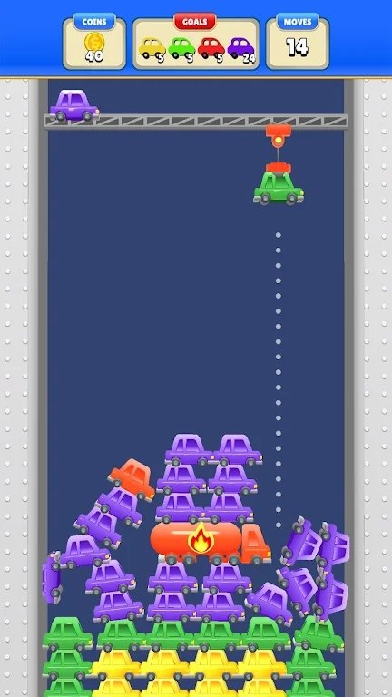2、当三辆或更多同色车辆成功堆叠时,会触发震撼的爆炸动画,同时获得几何级数增长的分数奖励;