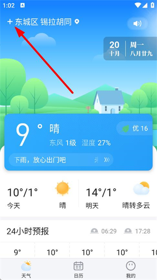 1、在天气APP主页面,点击左上角+号,进入城市管理页面。