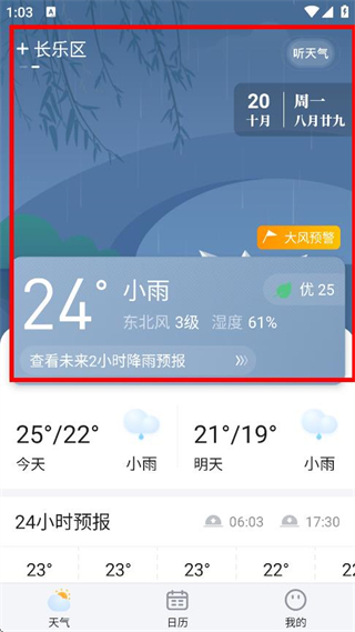 4、随后我们选择城市后,即可在APP主页面查看该城市的天气信息。